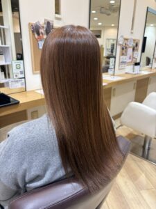 酸性ストレート+ピンクカラーでウルツヤな髪に まとまりやすく、甘いカラーで可愛く仕上がりオススメです☆ スタイリスト池内
